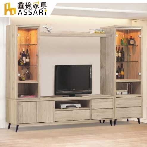 寶雅橡木9.3尺高低櫃/電視櫃全組(寬278x深39x高188cm)