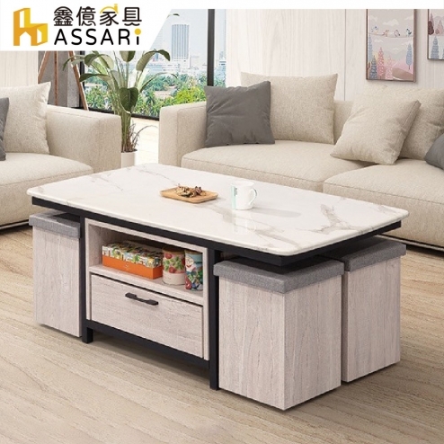 凱爾4.3尺石面大茶几(含2椅凳)(寬130x深70x高50cm)