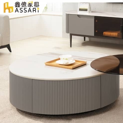 布萊恩岩板旋轉大茶几(寬80~120x深80x高35cm)
