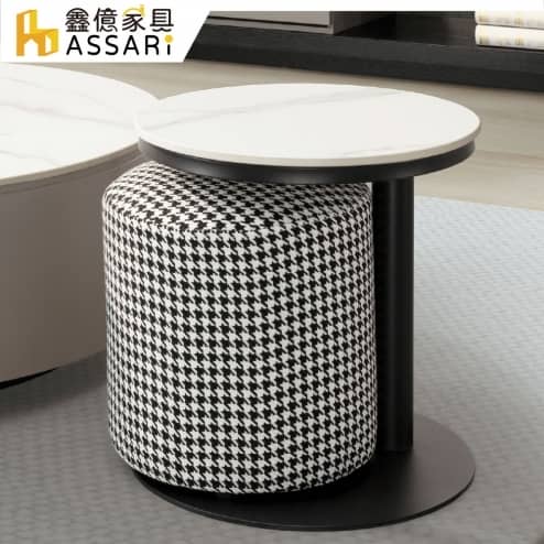 艾塞爾岩板小茶几+小椅凳x1(寬40x深40x高40cm)