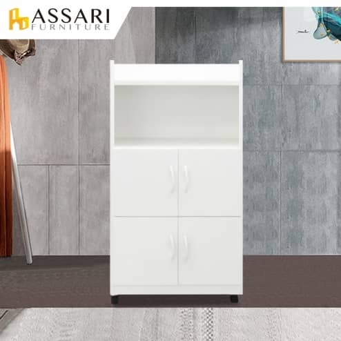防潮防蛀塑鋼緩衝四門開放碗盤櫃-附輪(寬64x深42x高119cm)