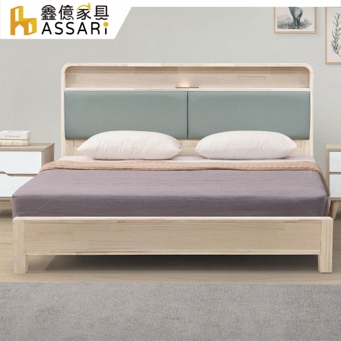 沐森小夜燈實木床組(床片+床底)-雙大6尺
