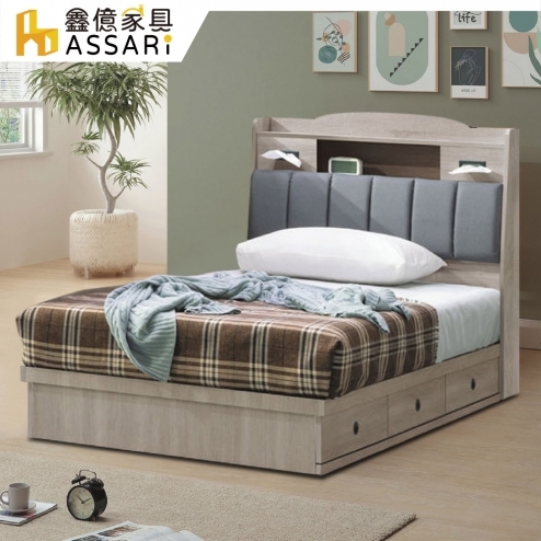 卡洛琳USB插座收納床頭箱(單大3.5尺)