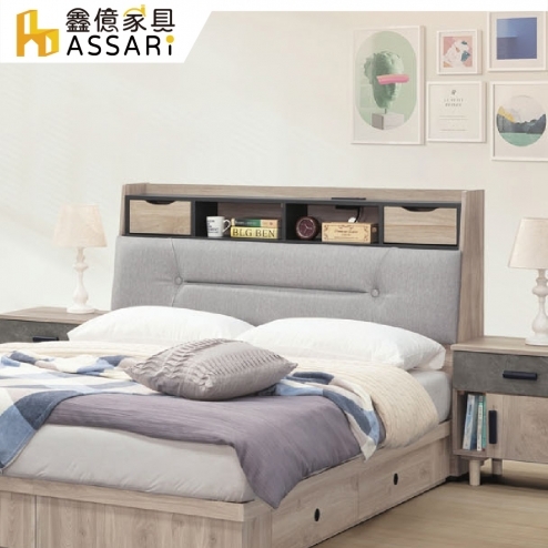 夏朵抽屜收納插座床頭箱(雙人5尺)
