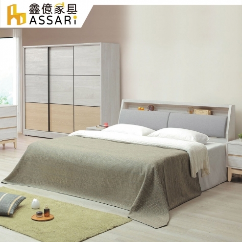 宮本皮墊收納插座床頭箱(雙大6尺)