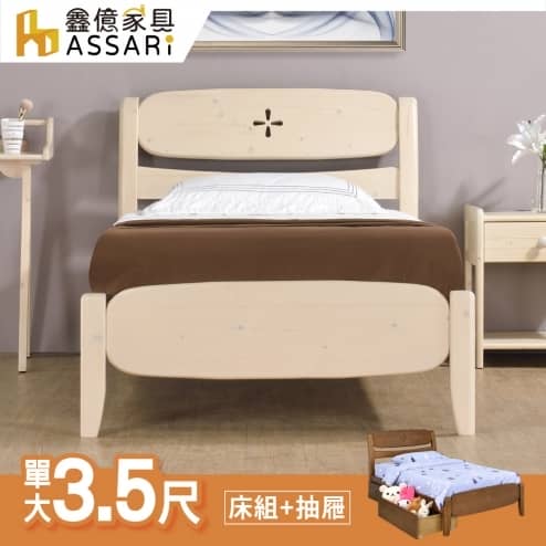 幸運草實木床底/床架+抽屜-單大3.5尺
