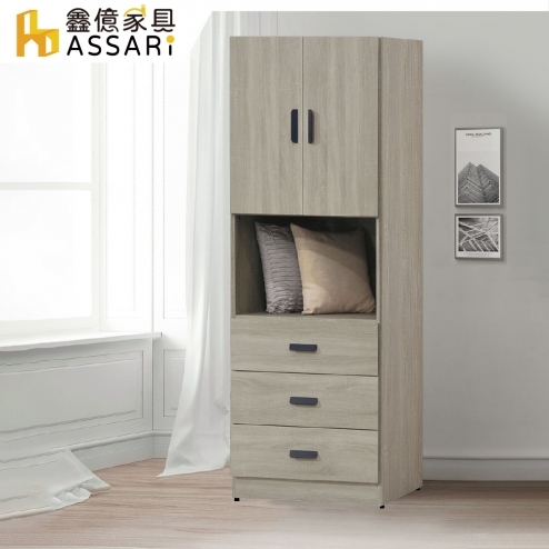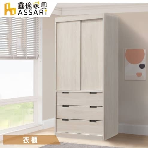 米恩2.5尺三抽拉門衣櫃(寬76x深60x高197cm)