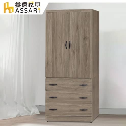 亞曼2.7尺三抽加高衣櫃(寬81x深57x高242cm)