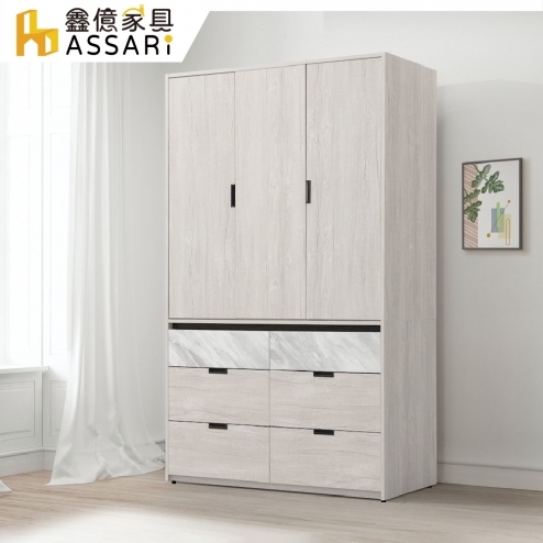 多朵4尺三門衣櫃(寬121x深60x高199cm)