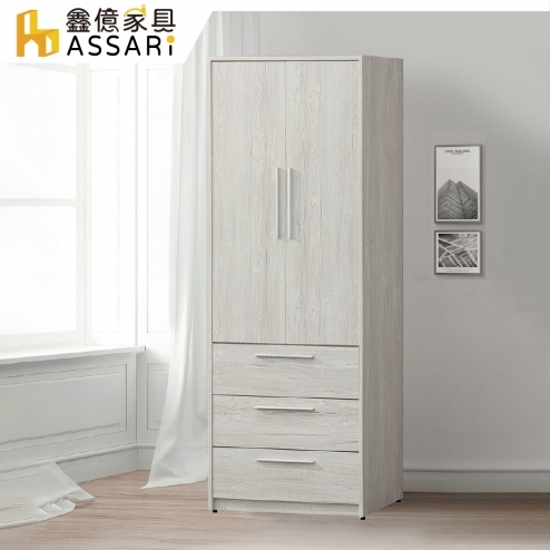 迪奧2.7尺三抽衣櫃(寬80x深60x高197cm)