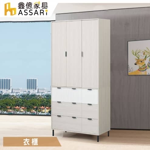 迪奧2.7尺三抽加高衣櫃(寬80x深60x高241cm)