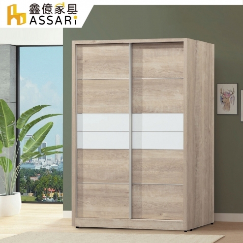 肯詩特原橡雙色5x7尺推門衣櫃(寬145x深61x高197cm)