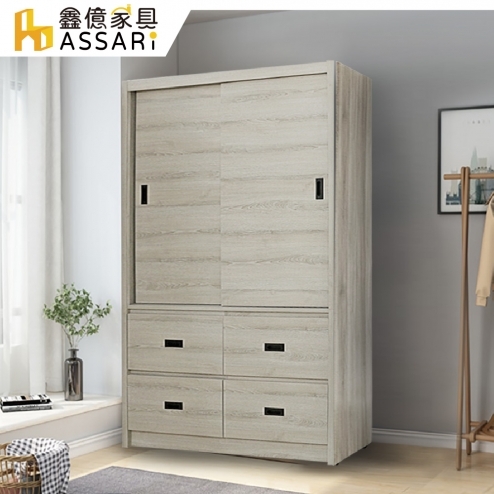 拉比灰橡4尺附抽推門衣櫃(寬121x深60x高200cm)