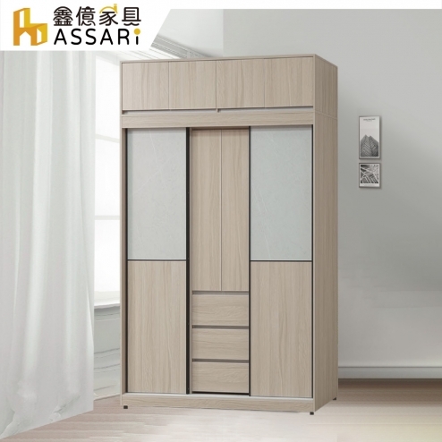 夏禾4尺雙色加高推門衣櫃(寬121x深60x高231cm)