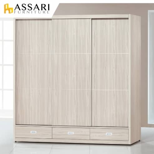 霍爾白梣木7X7尺下三抽推門衣櫃(寬210x深60x高210cm)