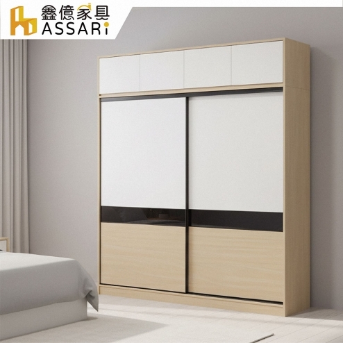霍爾白梣木5X7尺推門衣櫃(寬152x深60x高195cm)