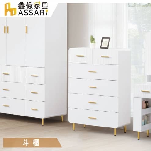 伊梵白原切七斗櫃(寬150x深48x高78cm)