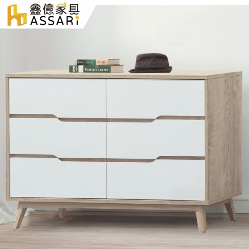 肯詩特原橡雙色4尺六斗櫃(寬120x深40x高76cm)