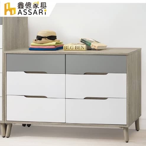 肯詩特淺灰烤白雙色4尺六斗櫃(寬120x深40x高75cm)