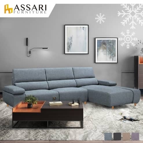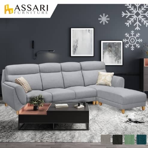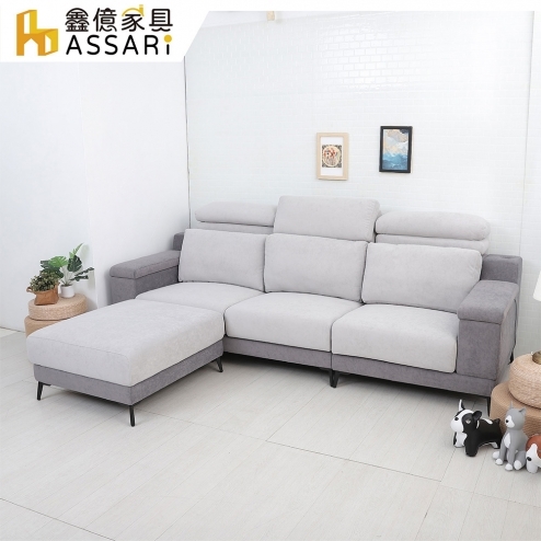 亨利輕柔貓抓布L型沙發(四人座+腳椅)
