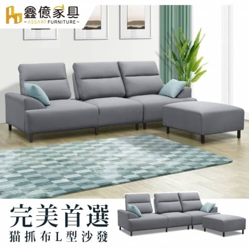 沐雅可調節機能L型貓抓布沙發灰色