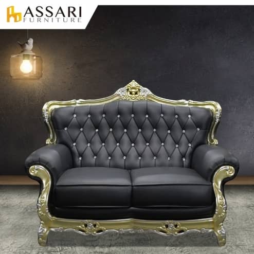 奢華法式路易十四雙人座半牛皮沙發
