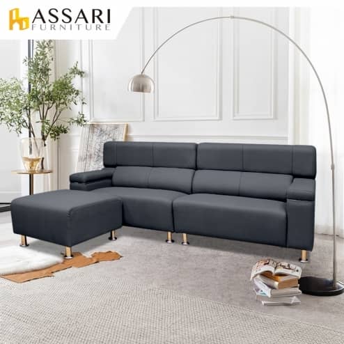 雅尼斯經典時尚半牛皮L型沙發
