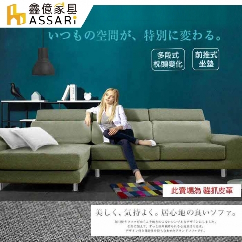 蘭斯舒柔透氣L型貓抓皮沙發