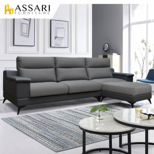 菲理蒙耐磨L型貓抓皮沙發(四人座+86x65cm腳椅)