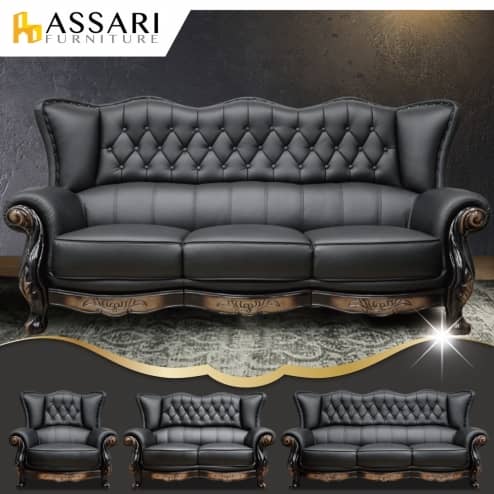 蒙特至尊金邊1+2+3人座半牛皮沙發