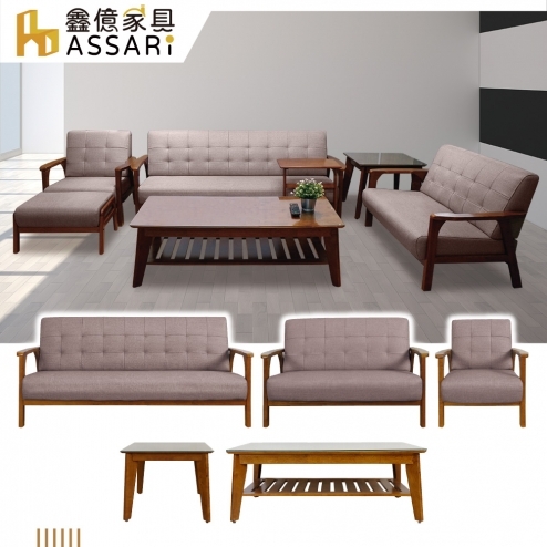 巴克1+2+3人貓抓皮實木沙發+大小茶几