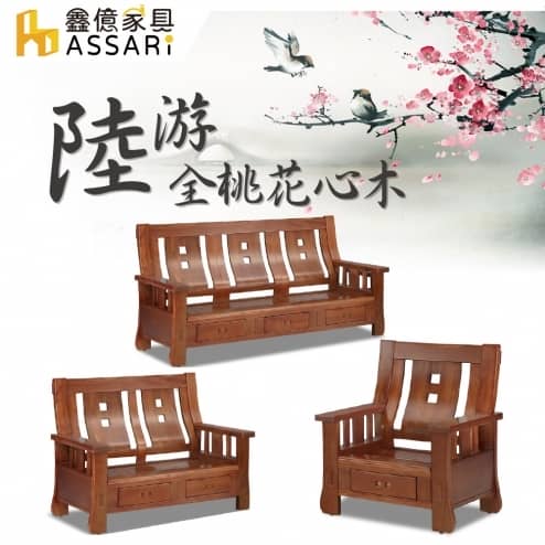 陸游全桃花心木1+2+3人沙發+大小茶几(含2椅凳)