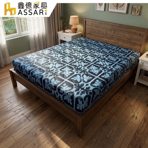 藍色厚緹花布護背式冬夏兩用彈簧床墊(雙人5尺)