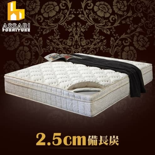 典藏2.5cm備長炭三線強化側邊獨立筒床墊(單大3.5尺)