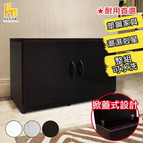 水洗塑鋼2.7尺掀蓋式緩衝雙門座鞋櫃(寬83深43高53cm)