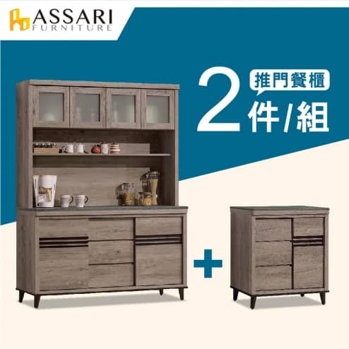 古橡木5尺推門餐櫃二件組(全組+2.7尺下座)
