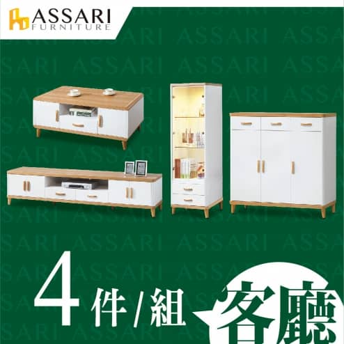 溫妮客廳四件組(4尺大茶几+7尺電視櫃+2尺展示櫃+4尺鞋櫃)