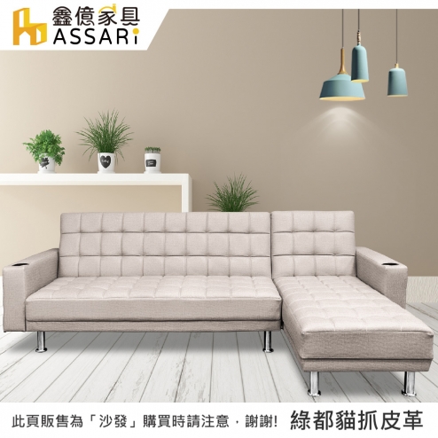 舒曼加厚可調式L型綠都貓抓皮沙發床(左右可換)
