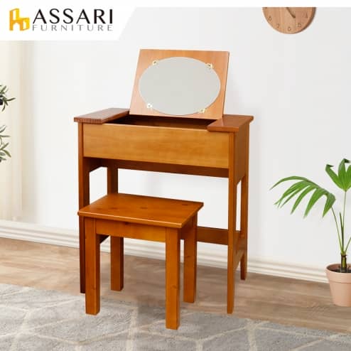 和風實木掀鏡化妝桌椅組
