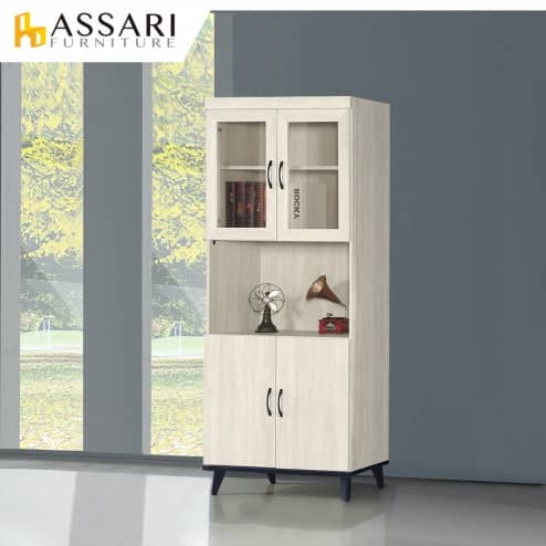 鋼刷白2.7x6.5尺四門開放書櫃(寬81x深40x高195cm)