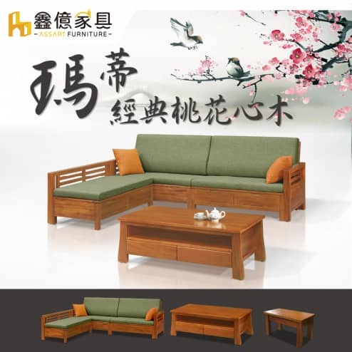 瑪蒂桃花心木L型沙發+大茶几(含2椅凳)