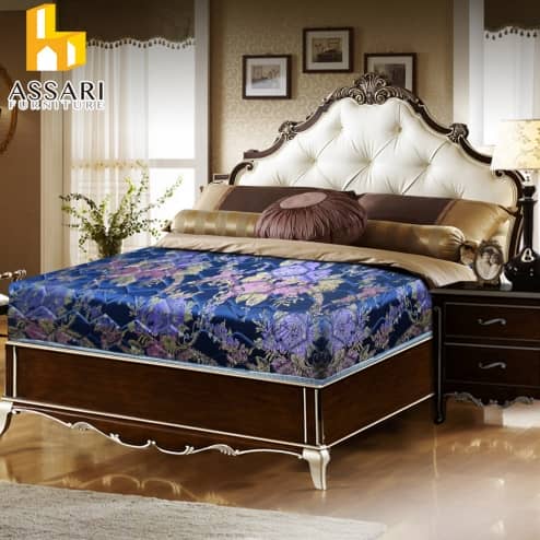 藍色厚緹花布護背式冬夏兩用彈簧床墊(雙人5尺)