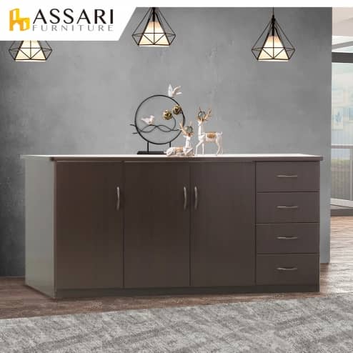 防潮防蛀塑鋼緩衝三門四抽碗盤櫃(寬164x深43x81cm)