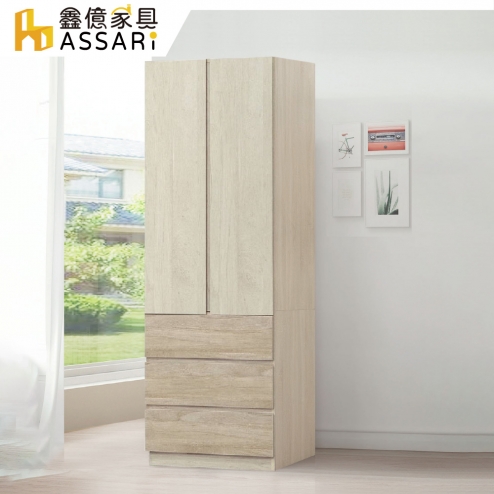 伊凡2.5尺單吊三抽拉門衣櫃(寬76x深57x高197cm)