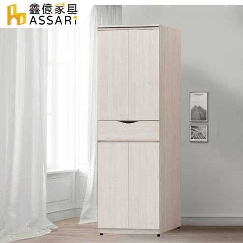 寶麗白雲橡2.5尺雙吊中抽衣櫃(寬76x深58x高197cm)