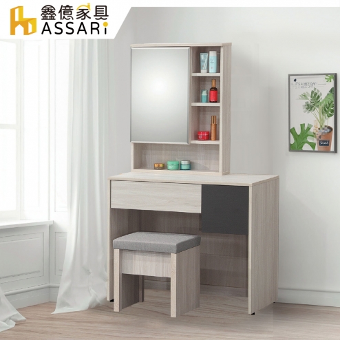 白雲木3尺化妝桌椅組(寬90x深40x高155cm)