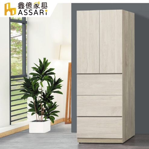 歐克曼2.5尺單吊三抽拉門衣櫃(寬76x深60x高202cm)