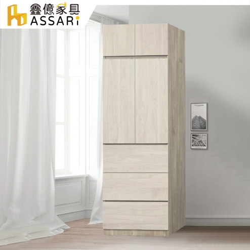 歐克曼2.5尺單吊三抽拉門加高衣櫃(寬76x深60x高242cm)