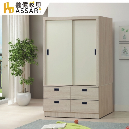 沐澄4尺推門四抽衣櫃(寬120x深58x高179cm)