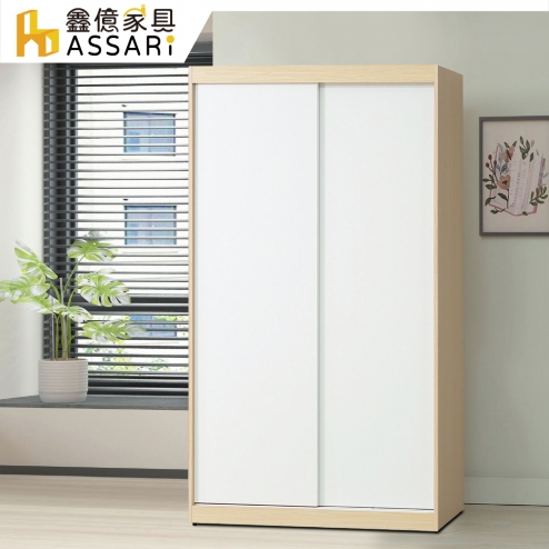 原木雙色4尺推門衣櫃(寬122x深55x高202cm)